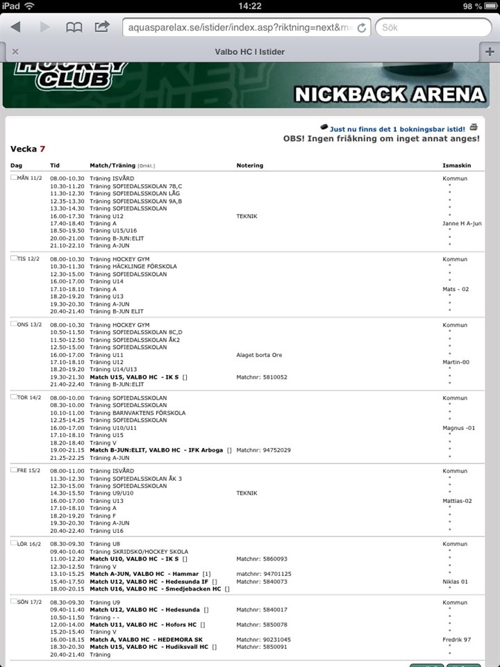 Länken som går till istider verkar vara ur funktion just nu Kolla på lagsidorna ang istider och matcher