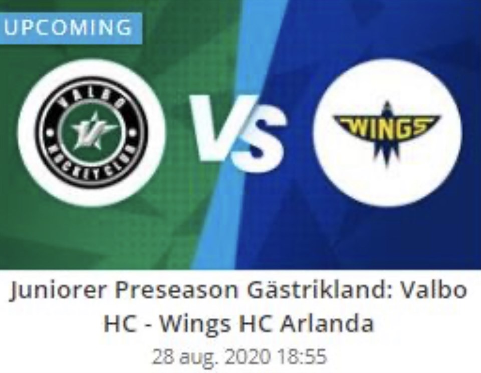 I morgon kväll kl. 19.00 spelar vårt J20 elitlag hemmamatch mot Arlanda Wings. Kanske dags för revansch för Valbograbbarna, som förlorade med uddamålet (1-0), förra veckan mot just Wings. En jämn och målsnål match. Får se om det blir fler avslut och mål i morgon. Som ni säkert vet, spelas Valbos hemmamatcher utan publik, men vi kan meddela att matchen sänds i svensk hockey tv. Så, klicka in på länken nedan, så kan ni följa och stötta grabbarna digitalt. Svensk hockey tv Lycka till grabbar!